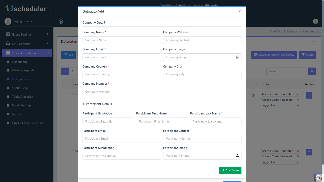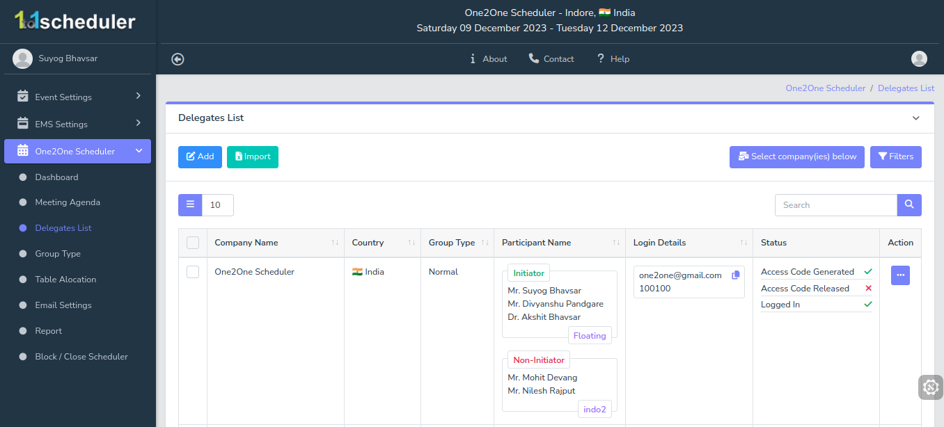 "My Profile" option will show your company details and also the details of all the delegates of your company participating in the event. Below, please check the screenshot of "My Profile" page:
